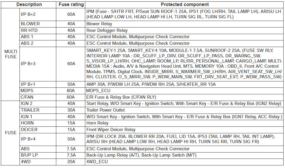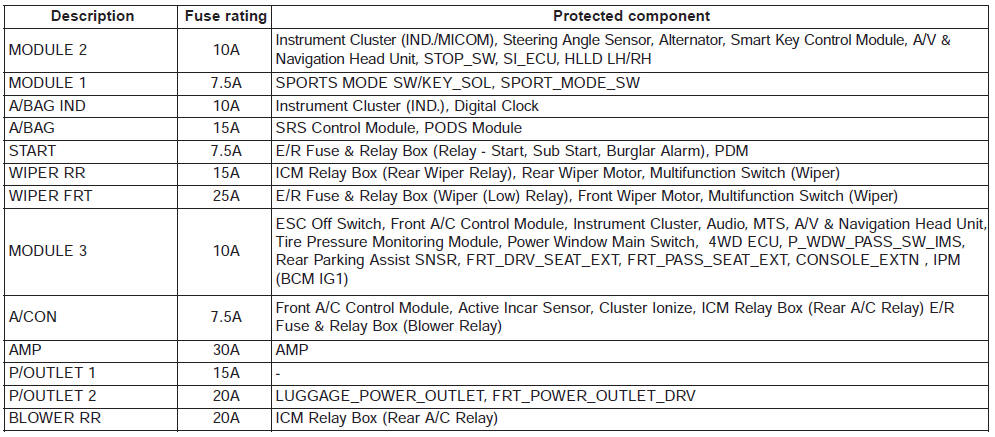 Inside the fuse/relay panel covers, you can find the fuse/relay label describing fuse/relay name and capacity.